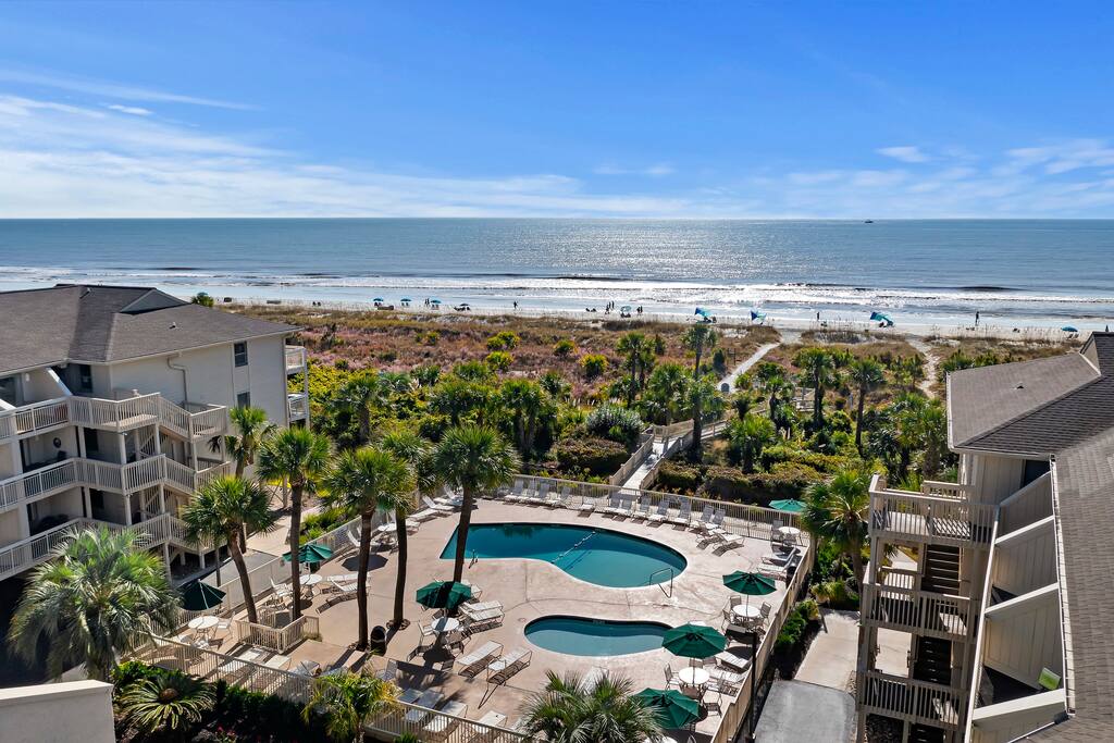 Unobstructed Oceanfront condo with a King size bed! You will not be disappointed! Park your car and walk or ride your bike everywhere! We are walkable to over 60 shops and restaurants, access to bike trails and the beach! You can walk to Pool Bar Jim's on the left or the Tiki Hut on the right! We have an elevator so no need to carry bags up the stairs! Pool is heated Nov - March and there is a separate kiddie pool! #ocenfrontrental #oceanfronthiltonheadrental #coligny #beachfrontrental